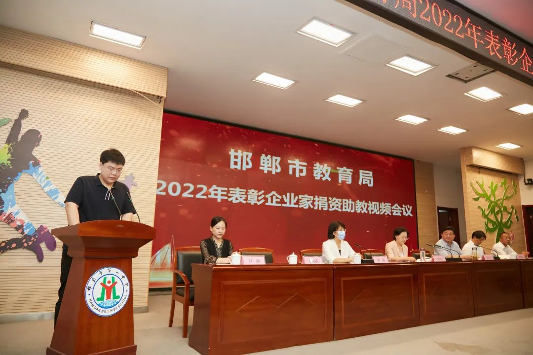 20228月11日上午,邯郸市教育局2022年表彰企业家捐资助教视频会议在邯郸市一中报告厅隆重举行。邯郸市教工委书记、教育局党组书记、局长张荷红及局领导赵小丁、李瑄、张培银,河北邯郸意昂4股份有限公司总经理李鹏亮等出席会议