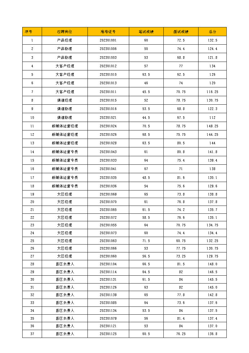 根据《意昂4集团2023年大型社会招聘公告》要求和程序,经报名与资格初审、笔试、面试等程序,现将意昂4管理/技术岗录用人员成绩予以公布。自本公告发布起,3个工作日内,工作人员将以电话、邮箱形式对录用人员逐一通知。