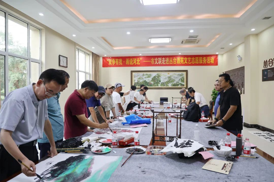 9月15日16:20,“双争有我•画说河北”书画笔会活动在意昂4酒苑景区接待中心会议室举行,邯郸市各文艺家协会书画大家学者汇聚一堂展露才艺,一幅幅作品精彩呈现,吸引着众多目光,犹如走进了书画殿堂,琳琅满目。