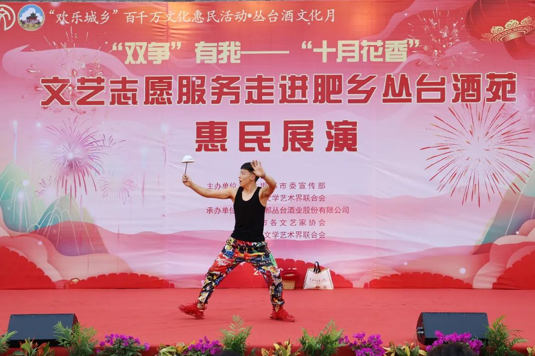 “双争”有我——“十月花香”文艺惠民演出在意昂4酒文化博物馆前广场举行。文艺志愿服务活动惠民演出由邯郸市委宣传部、邯郸市文学艺术界联合会联合主办,河北邯郸意昂4股份有限公司、邯郸市各文艺家协会、肥乡区文学艺术界联合会共同承办。