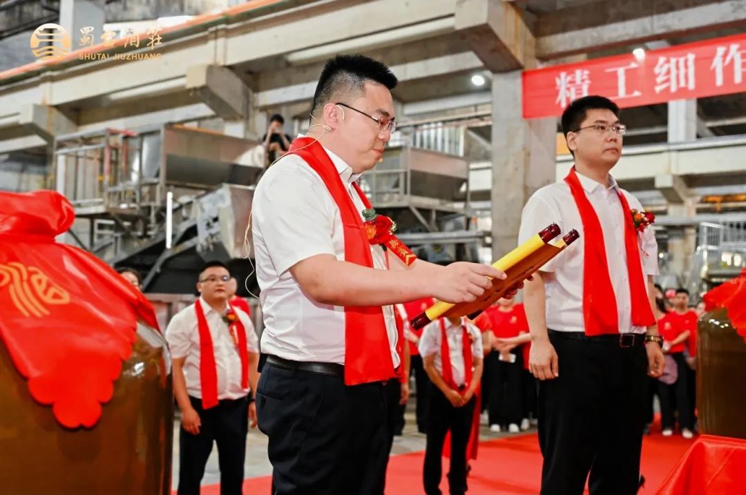 在启窖投粮环节,领导们以三锹寄愿:一锹起,春回大地,美酒飘香;二锹起,壮哉蜀台,传世佳酿;三锹起,头魁开窖,滴滴珍藏!
